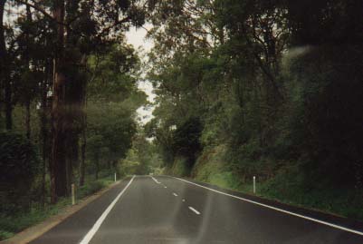 tegenliggers voorbij flitsten op deze weg door de Australische Bush. Deze bush werd eerde