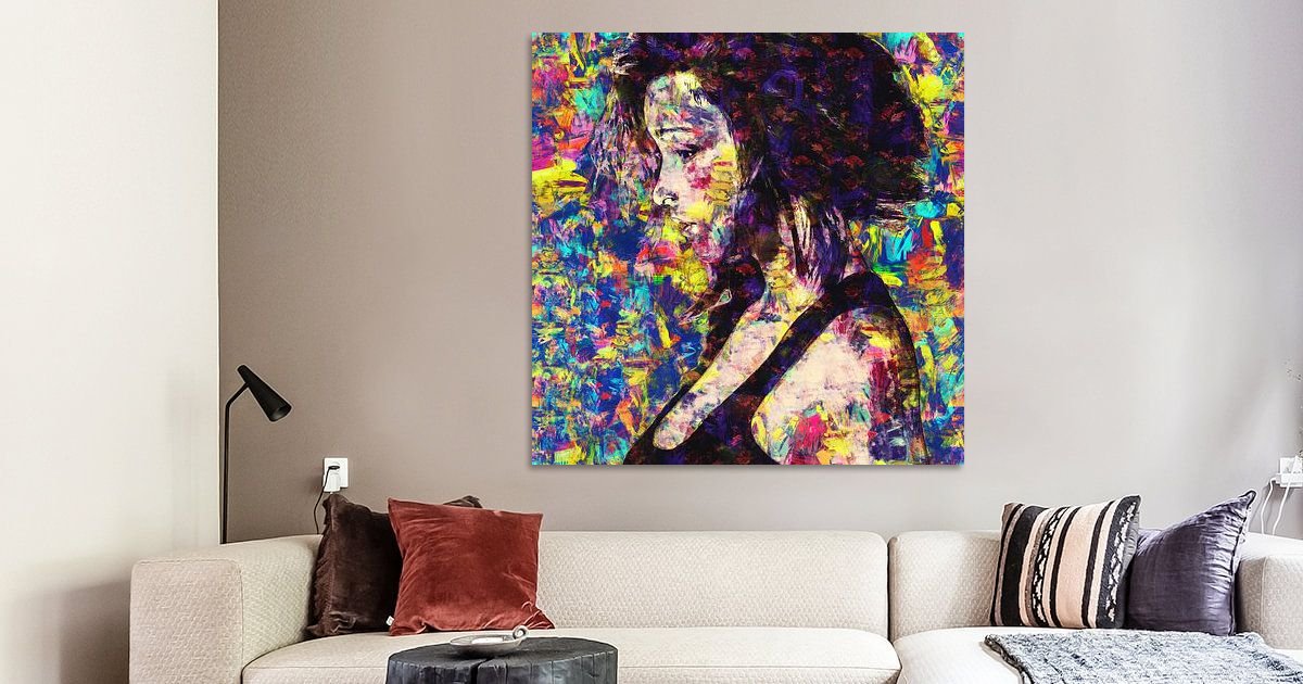 My artwork “Colourful Portrait I” is the first work in a series of two square portraits. It is a lively…