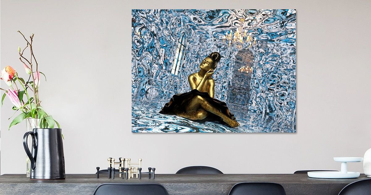 The triptych ‘Golden ballerinas’ takes you into a surreal blue space, where three elegant ballerinas shine in their golden tutus.…