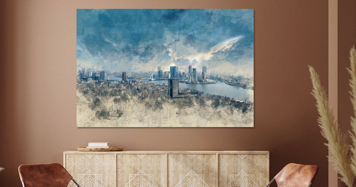 The “Painted skyline of Rotterdam” is a beautiful and detailed artwork depicting the skyline of Rotterdam as seen from the…