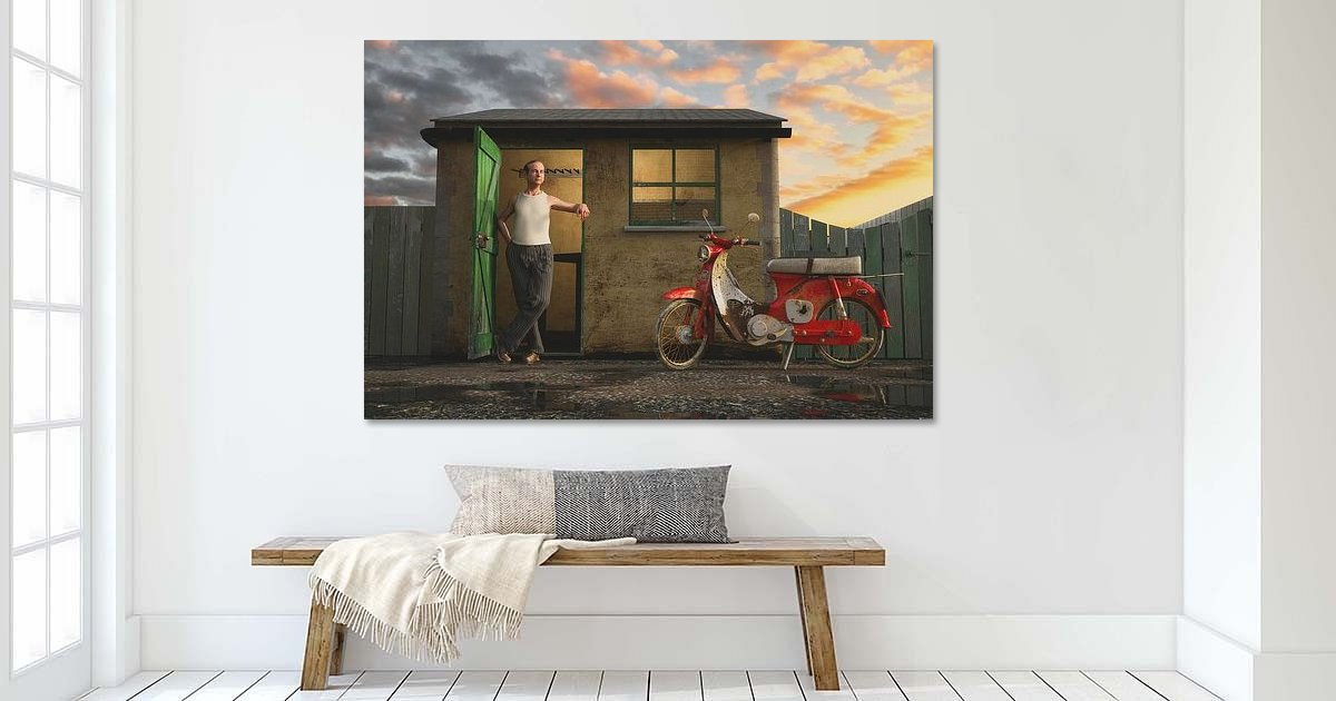My photo edit “Red Beach” is a colourful image of a tropical beach with palm trees, a beautiful sky and…