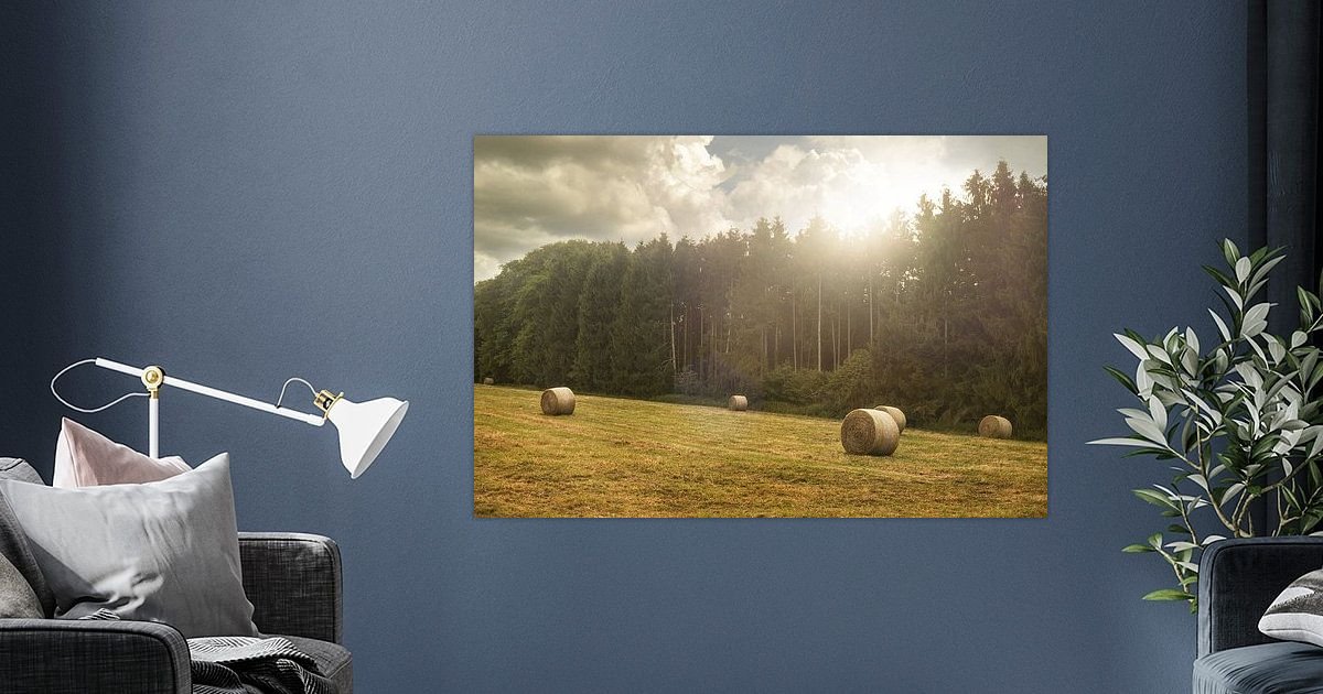 Rolls of hay: an enchanting image of rolls of hay captured in an idyllic field during a summer evening walk…