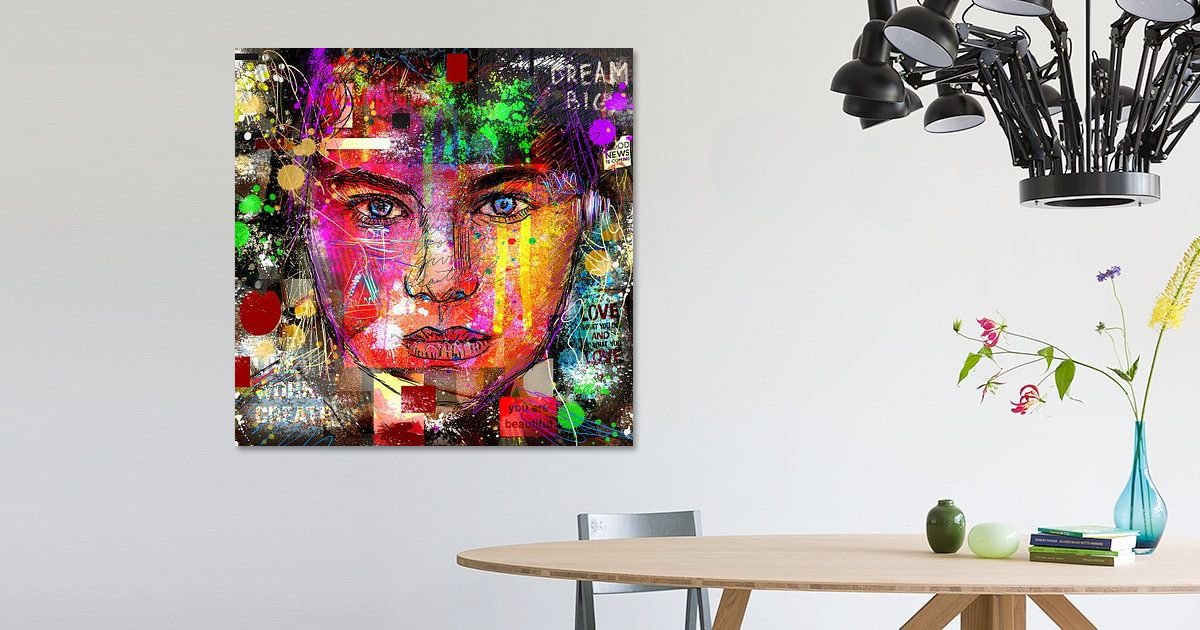 The artwork “Painted flower girl” is a colourful digital painting depicting a beautiful young woman surrounded by flowers in her…