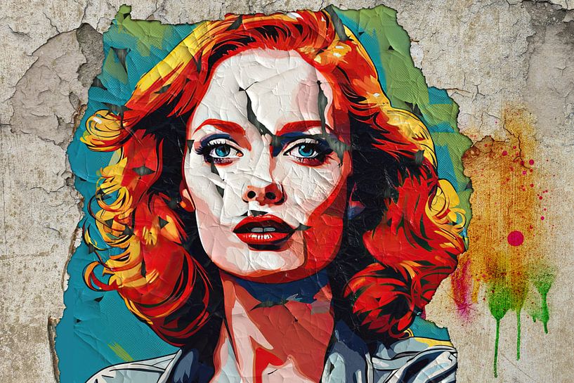 “Colourful Pop Art Portrait” is a dynamic and vivid depiction of a beautiful red-haired woman with striking blue eyes, drawn…