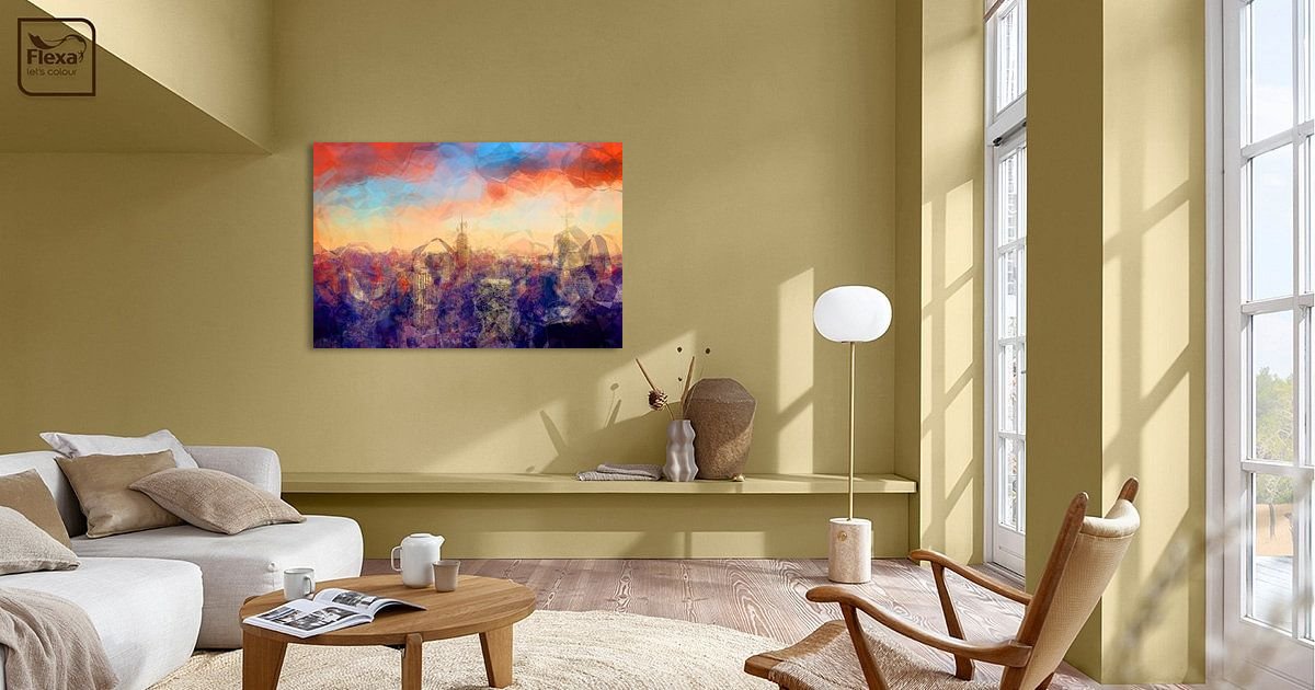 A large and very detailed abstract of the famous New York skyline during sunset.This work demands to be studied up…