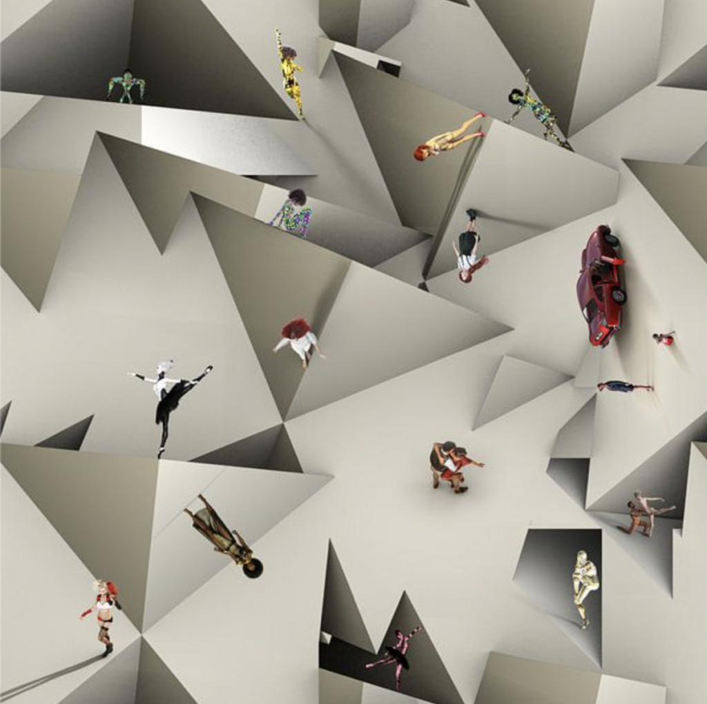 The figures and objects within this work are not arbitrary; they are hand-selected from my portfolio, each one representing a significant moment or theme in my artistic evolution. By integrating these past works, I am essentially placing snapshots of my journey within Escher’s framework. One of the most prominent of these details is a reference to my piece “Lost in the Red Thread,” where a woman and child, lost in the night beside a red car, evoke a sense of mystery and narrative tension. In “Escher in the Populated Remix,” they reappear, transformed by perspective, as if captured from a different camera angle within this infinite space. This technique of “re-placing” characters allows viewers to see familiar subjects in a completely new light, amplifying the story they tell.