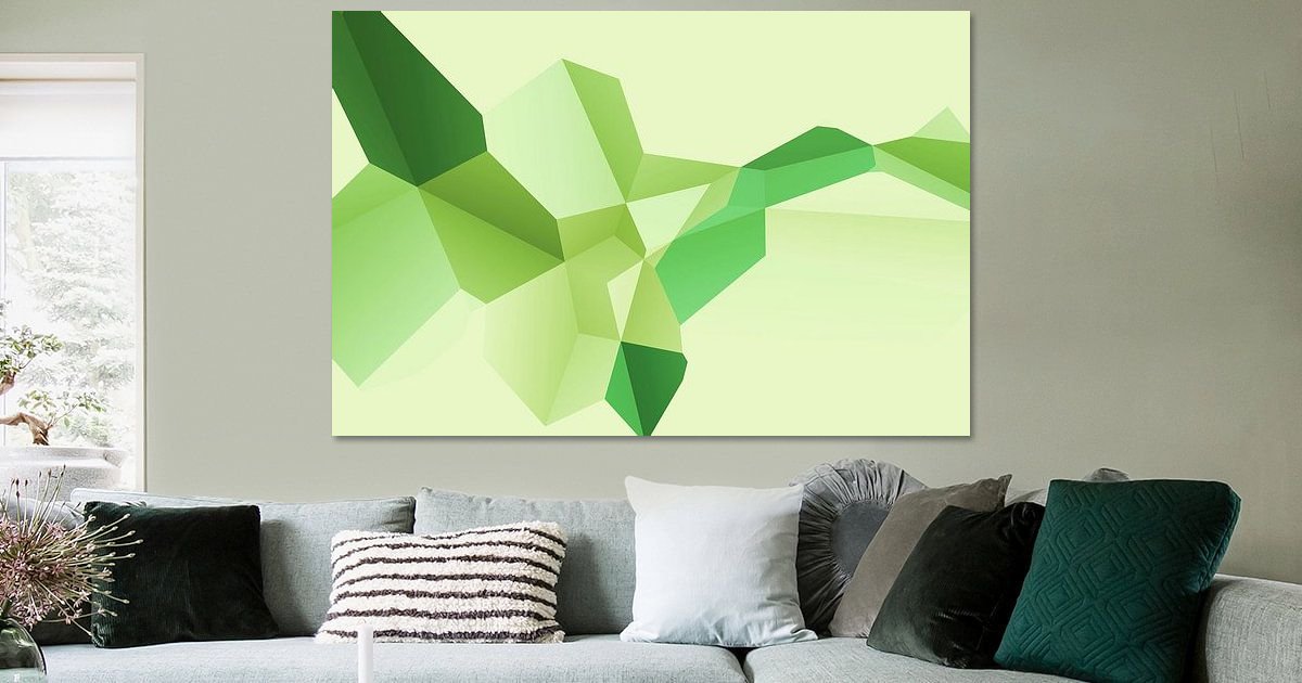 Think for yourself what you see here. A modern abstract work in shades of green to give an interior a…