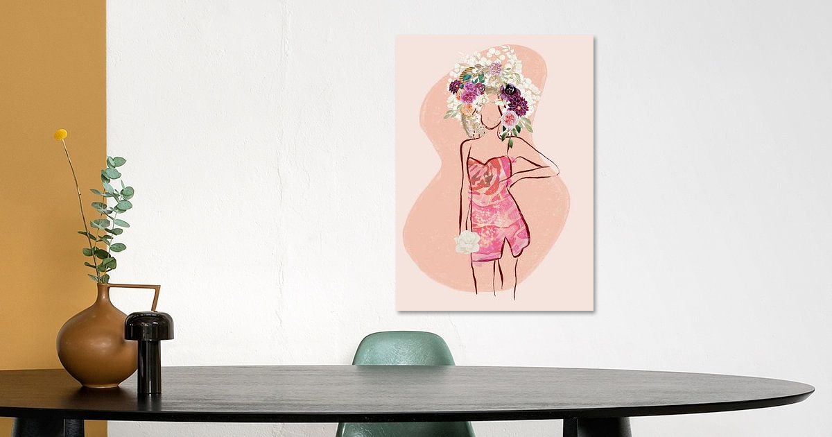 “Bright summer portrait in sketch”: This vibrant artwork shows a colourful sketch with flowers in soft, warm tones. It is…